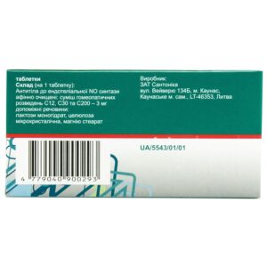 Active ingredient: 1 tablet contains affinity purified antibodies to endothelial NO synthase: a mixture of homeopathic dilutions C12, C30 and C200 – 3 mg;