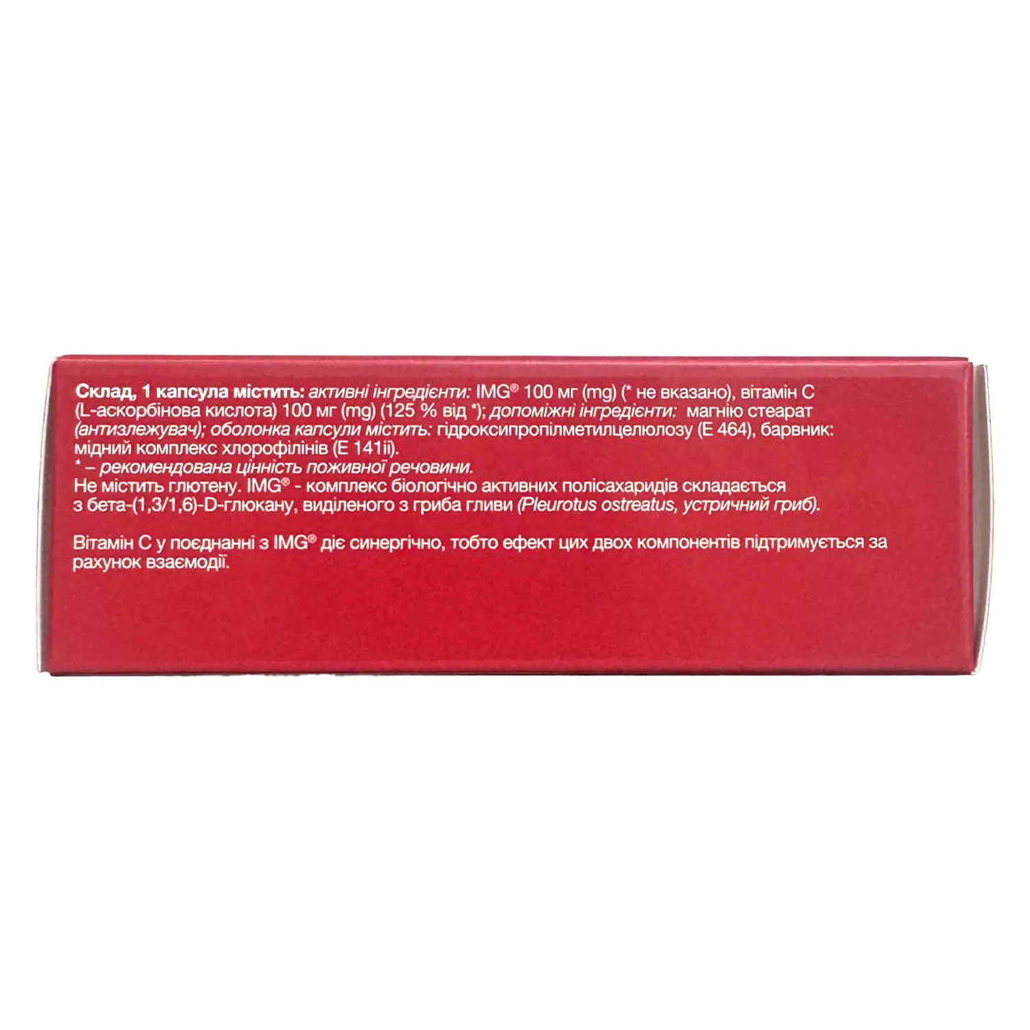 Vitamin C in combination with IMG acts synergistically, meaning the effect of these two components is supported by their interaction.