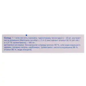 1 g of gel Kamistad N contains lidocaine hydrochloride monohydrate 20 mg, chamomile flower tincture (1: 5-5) 200 mg, thymol 1 mg.