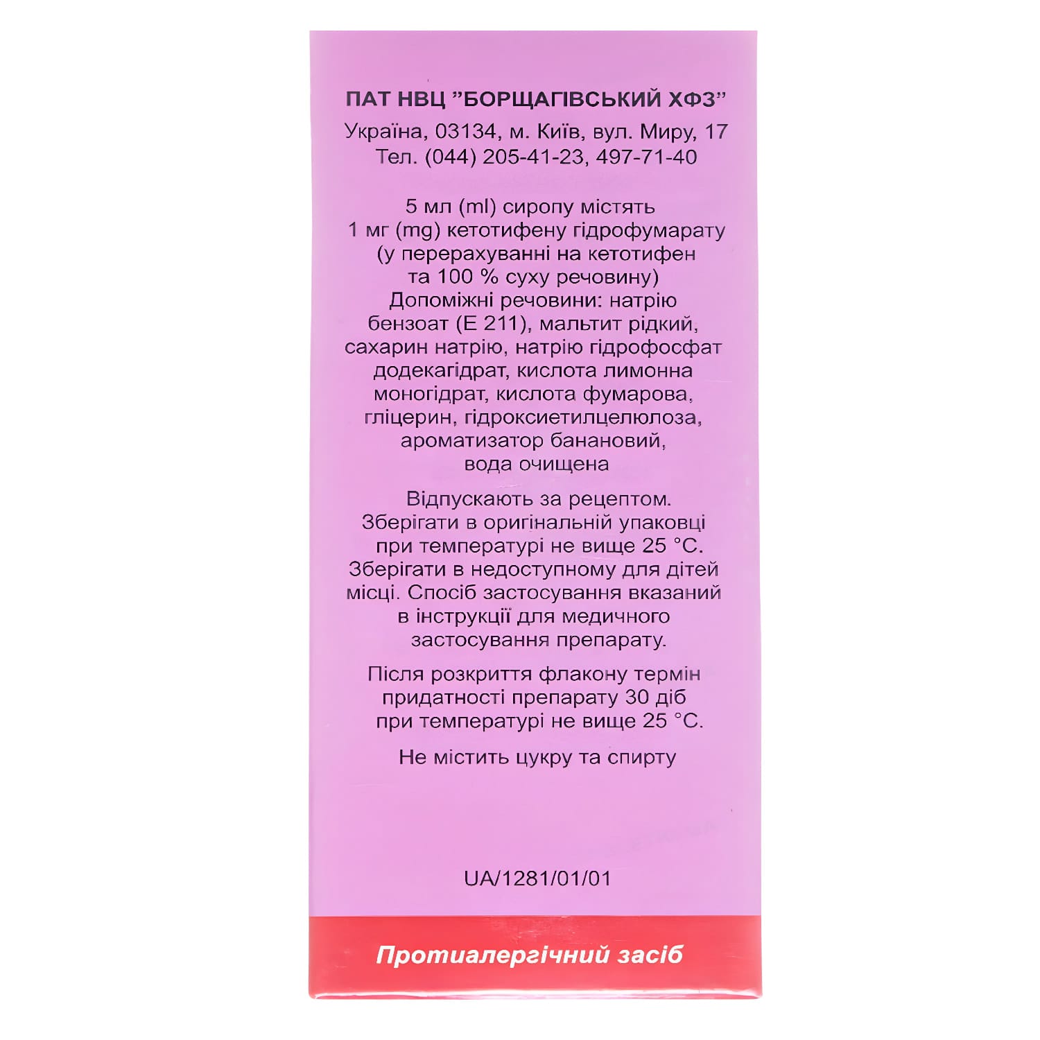 Adults and children over 14 years of age are prescribed 1-2 mg of ketotifen (5-10 ml of syrup) 2 times a day. Children aged 6 months to 3 years are prescribed the drug 2 times a day at 0.0125 mg of ketotifen per 1 kg of body weight. Children over 3 years of age are prescribed the drug 2 times a day at 0.025 mg of ketotifen per 1 kg of body weight. The required dose is measured using a dosing device with a graduation value of 0.1 ml.