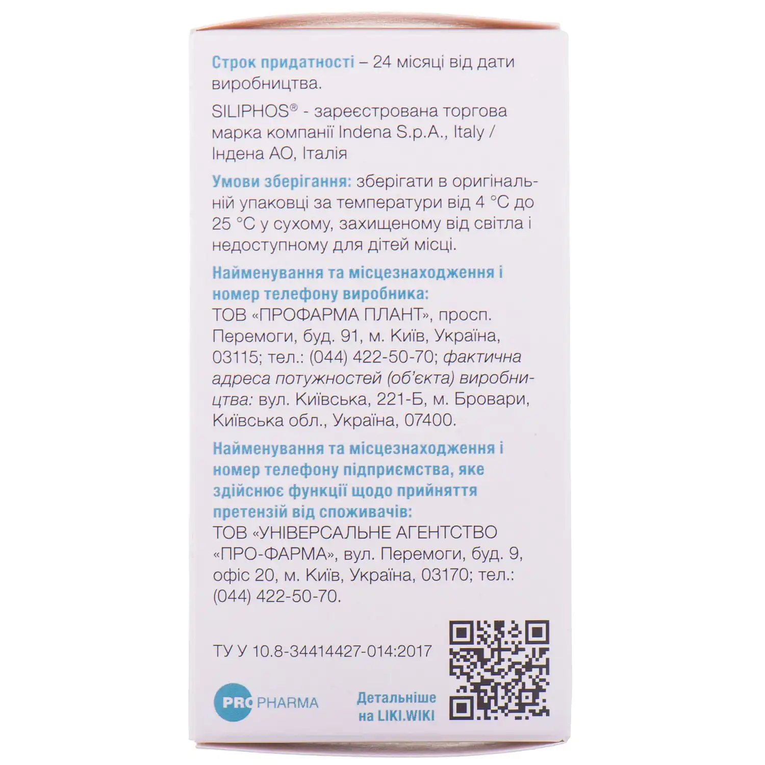 1 capsule contains the active ingredient – a patented derivative of milk thistle (Silybum marianum) “Siliphos” (silybinin – 42.77-52.27 mg, soy phospholipids – up to 86.4 mg, including phosphatidylcholine – up to 25.92 mg) – 144 mg.