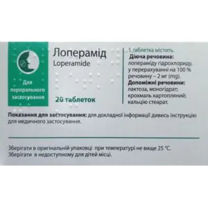 - 1 tablet contains loperamide hydrochloride in the calculation of 100% substance – 2 mg;