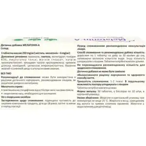 • 1 tablet weighing 250 mg contains: melatonin 6 mg;