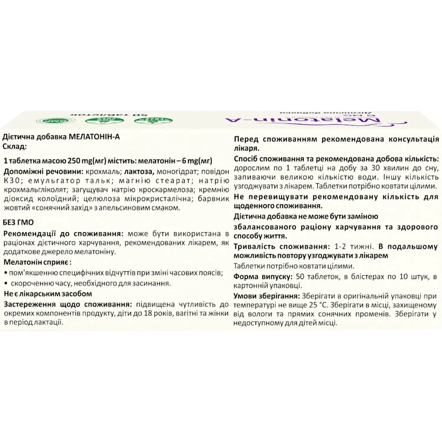 Melatonin-A is a dietary supplement, an analogue of the substance produced by the human body, which is responsible for the process of falling asleep. The maximum amount of melatonin is produced in the human body between 10:00 PM and 12:00 AM.