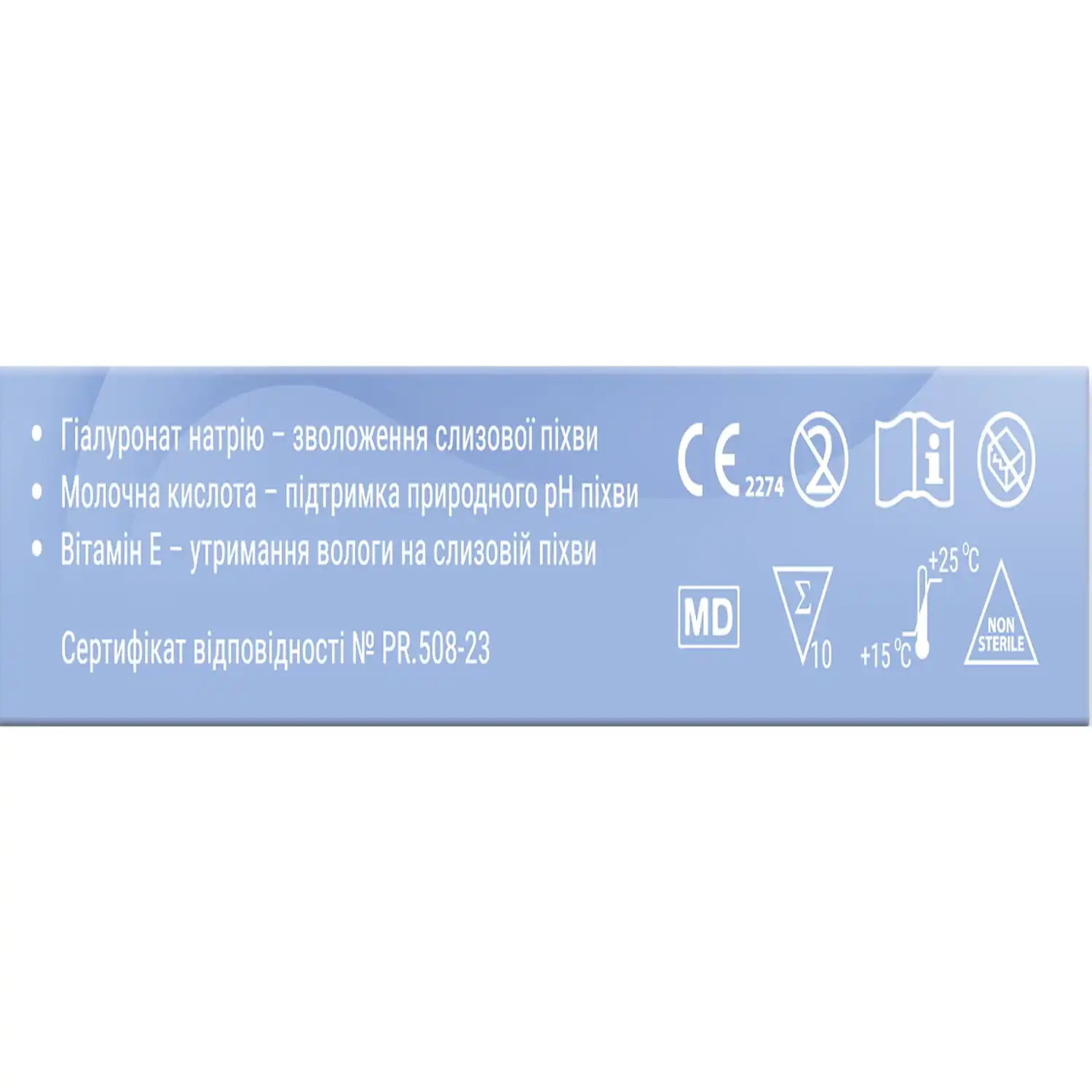 Sodium hyaluronate and tocopheryl acetate in the product protect and moisturize the vaginal mucosa. Lactic acid helps maintain the correct vaginal pH at <= 4.5 (acidic).