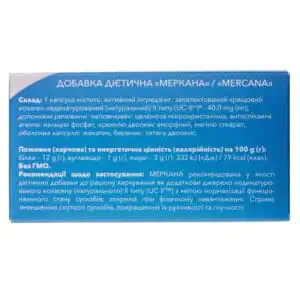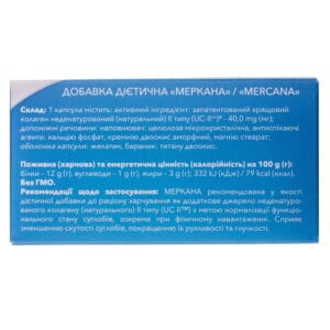 Excipients: filler (microcrystalline cellulose), anti-caking agents (calcium phosphate, amorphous silicon dioxide, magnesium stearate), capsule shell – gelatin, coloring agent (titanium dioxide).