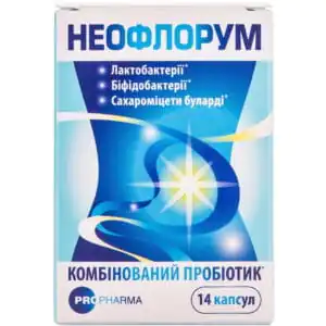 Antidiarrheal combined probiotic capsules Neoflorum (14 pcs. per package) are made using a unique Canadian technology, thanks to which a large number of lacto- and bifidobacteria, as well as Saccharomyces boulardii enter the intestines intact, having a beneficial effect on the intestinal microflora, which contributes to its normal functioning. Neoflorum does not require storage in the refrigerator.