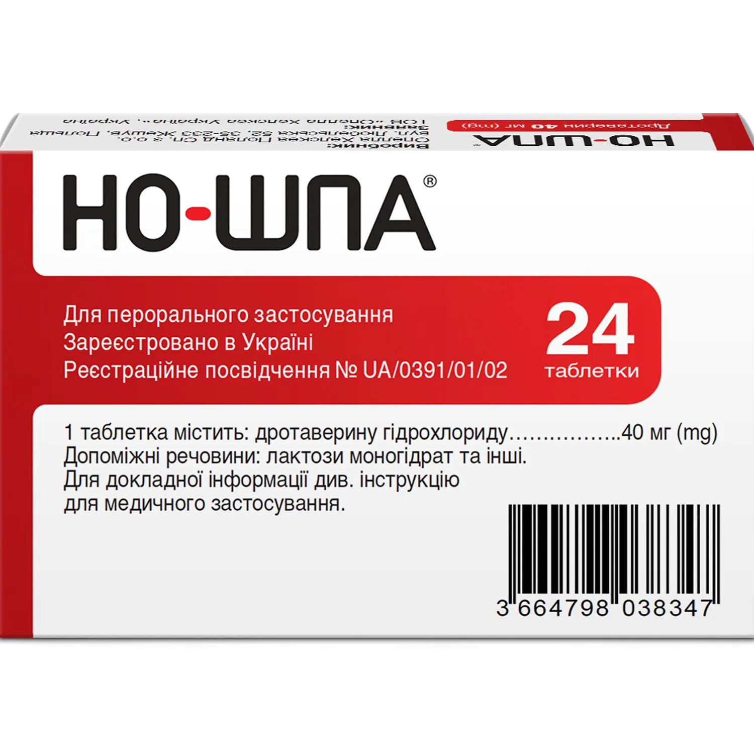 Active substance: drotaverine; 1 tablet contains drotaverine hydrochloride 40 mg.