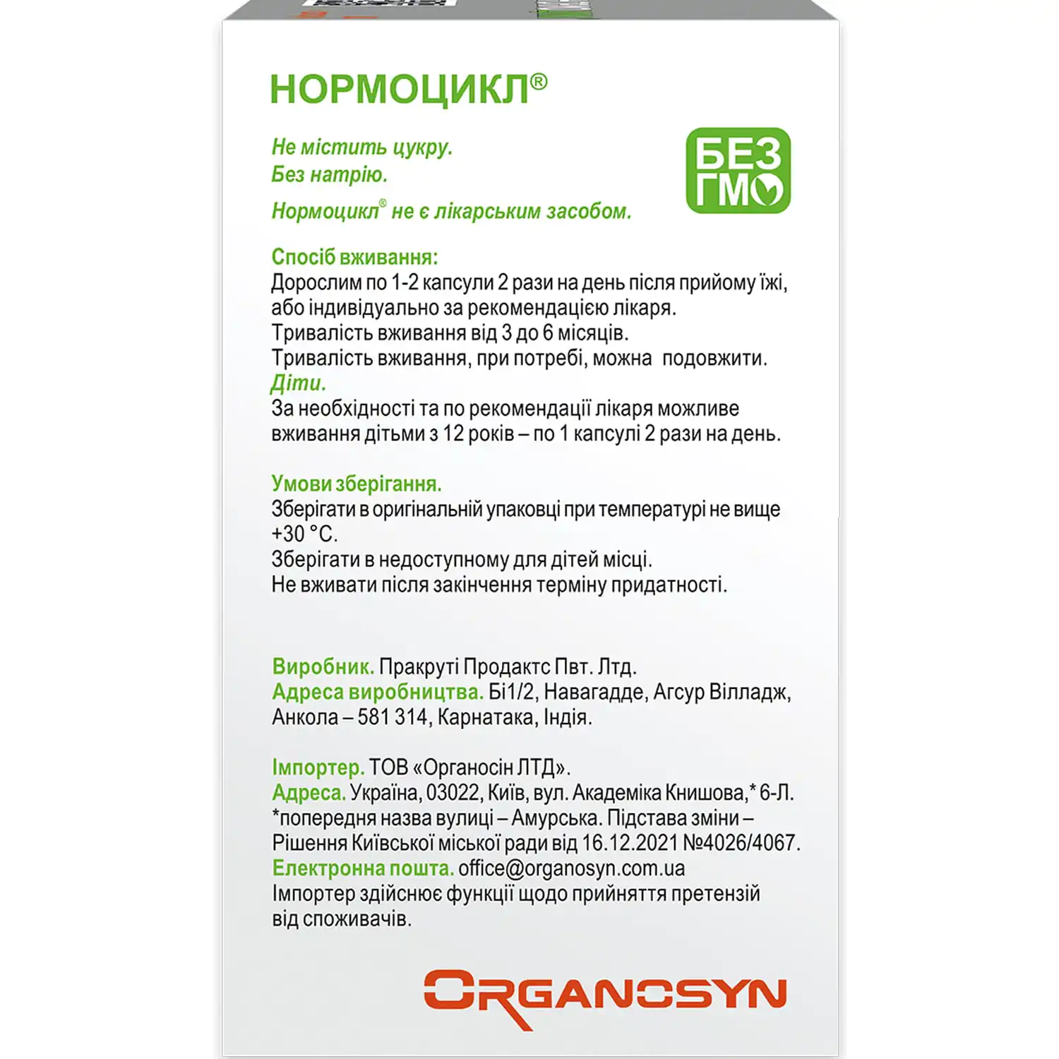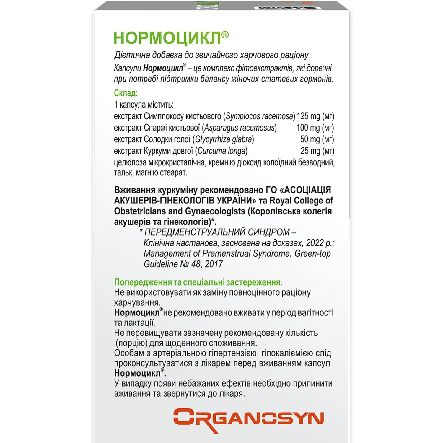 Not recommended for pregnant and breastfeeding women, children under 12 years of age, and people with hypersensitivity to the components of Normocycle capsules.