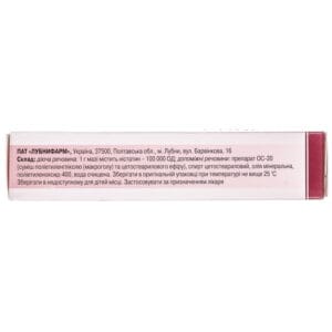 excipients: preparation OS-20 (a mixture of polyethylene glycol (macrogol) and cetostearyl ether), cetostearyl alcohol, mineral oil, polyethylene oxide-400, purified water.