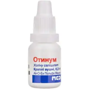 Otinum – a drug with anti-inflammatory and analgesic effects for local use in otology. Choline salicylate is a derivative of salicylic acid. Inhibits the activity of COX – the enzyme responsible for the synthesis of prostaglandins, – the synthesis of thromboxane and prostacyclin. Glycerin, which is part of the drug, helps soften and facilitate the removal of earwax. When used locally, the drug does not have a systemic effect.