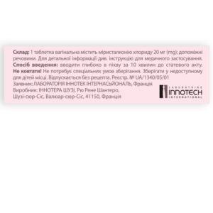 Hypersensitivity (allergic reactions or irritant effects) to the components of the drug, vaginitis, ulcers and irritation of the mucous membrane of the vagina and cervix. Inability to properly use vaginal tablets by persons with mental disorders and persons who do not tolerate any interventions on the genitals, or those who are unable to understand and accept this type of contraception.