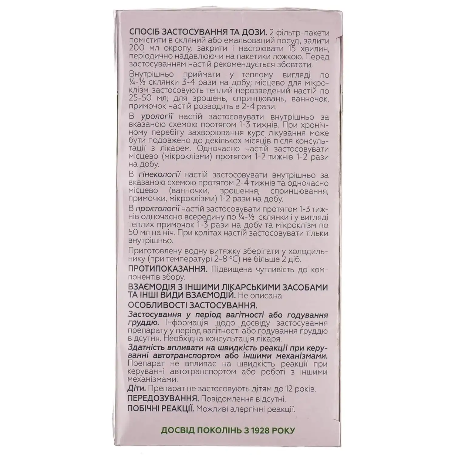 In urology, the infusion is taken orally according to the indicated scheme for 1-3 weeks. In chronic cases, the course of treatment can be extended to several months after consulting a doctor. At the same time, the infusion is applied topically (microclysters) for 1-2 weeks 1-2 times a day.