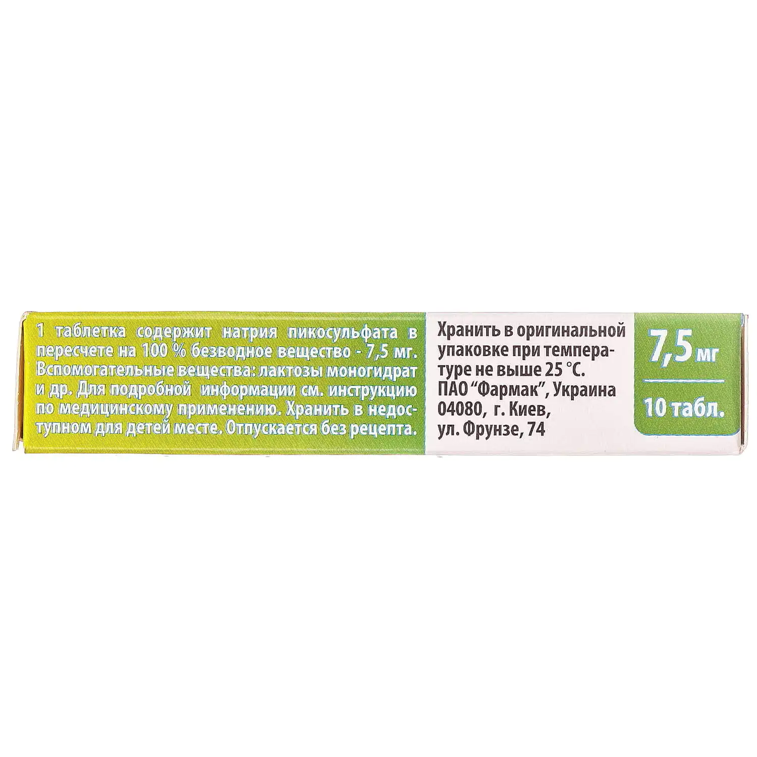 Pharmacokinetics. After oral administration of sodium picosulfate reaches the large intestine without significant absorption. The active metabolite bis-(p-hydroxyphenyl)-pyridyl-2-methane is formed after bacterial cleavage in the colon, the onset of action of Picolax usually occurs 6-12 hours after taking the drug, depending on the release of the active metabolite. After oral administration, a small amount of the drug can be detected in the organs and systems of the body.