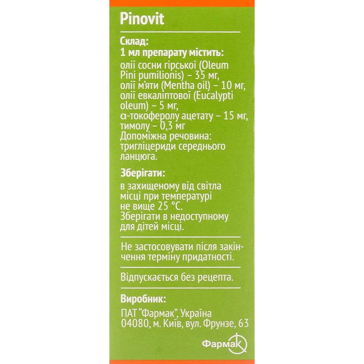 Adults. On the first day, instill Pinovit 2-3 drops into each nostril 3-6 times a day, from the second day – 2-3 drops into each nostril 3-4 times a day.