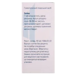Kalium phosphoricum is a homeopathic preparation. It is one of the 12 potentized salts of Dr. Schussler. Mineral salts are necessary for the body to maintain cell function. According to Dr. Schussler’s theory, regulatory disorders of cell function often lead to the development of diseases and ailments. Dr. Schussler’s method of treatment with mineral salts regulates the functional abilities of the body’s cells, harmonizing the balance of mineral salts.