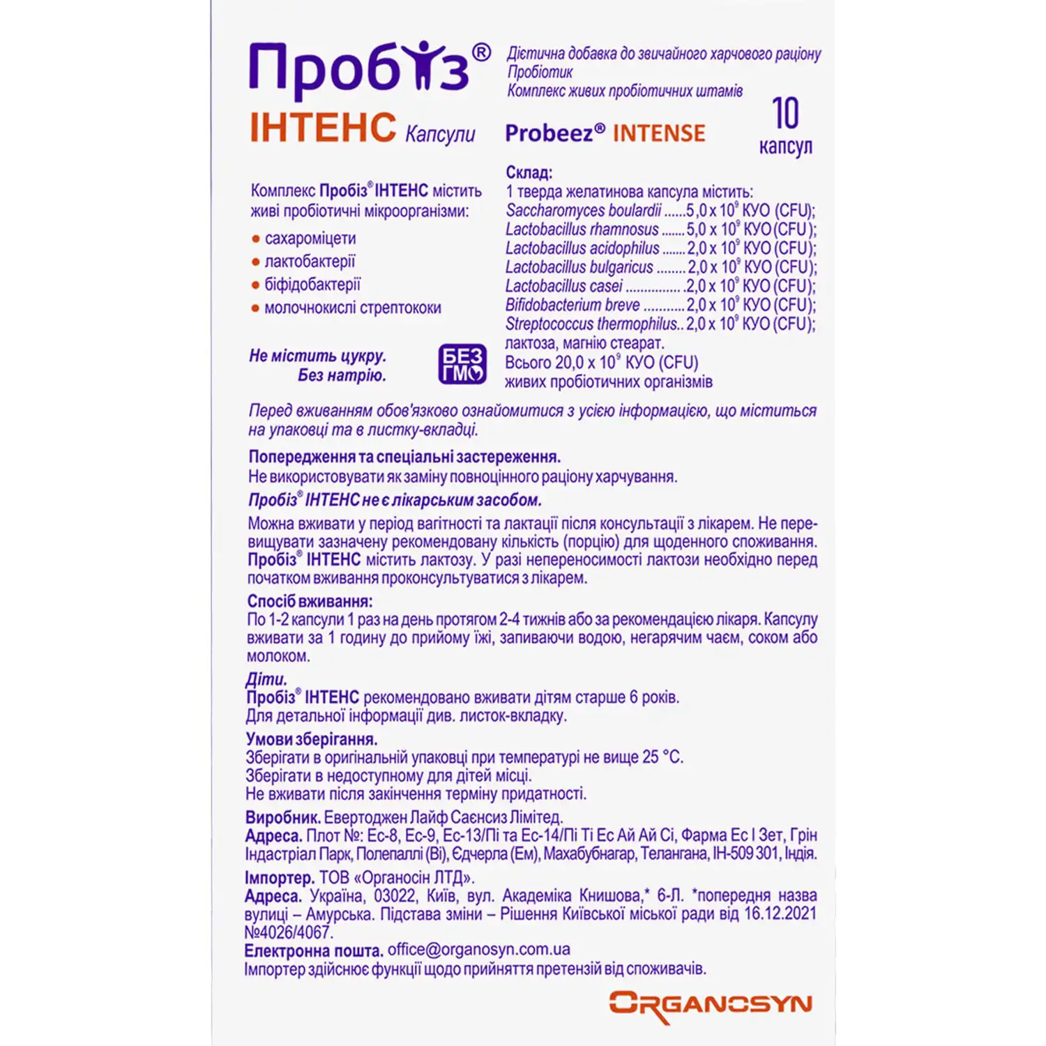 Probeez Intense capsules are a dietary supplement to the regular diet, a complex of live probiotic strains.
