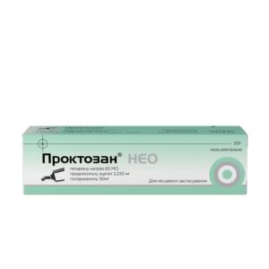 1 g of ointment contains sodium heparin 65 IU, prednisolone acetate 2.233 mg, polidocanol 30 mg;