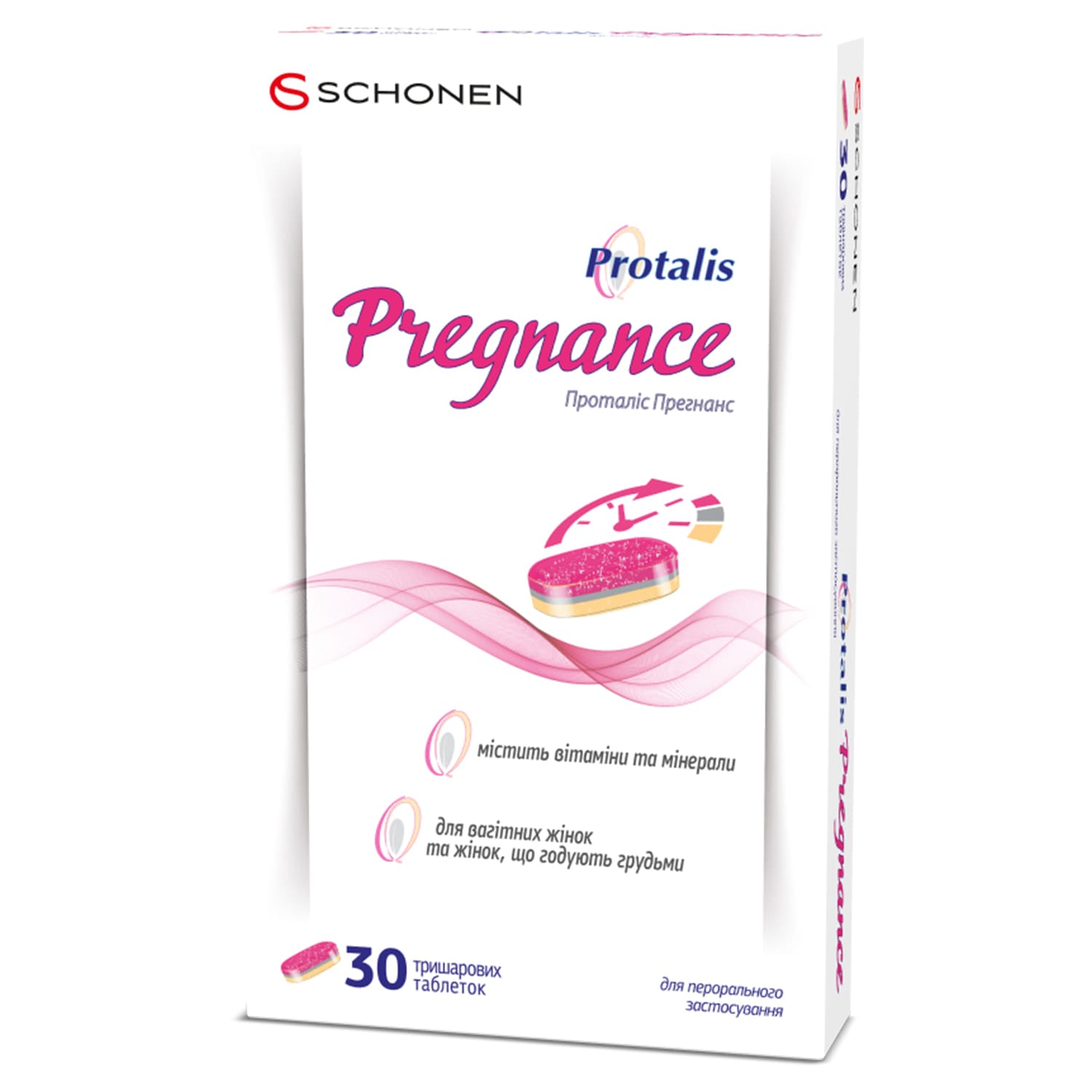 Protalis Pregnancy is a three-layer tablet with a differentiated release of vitamins and minerals in three phases: