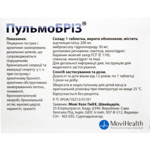 Pulmobreathe is a combined drug that is used for inflammatory diseases of the respiratory tract. The activity of the drug is determined by two active substances – acetylcysteine and ambroxol.