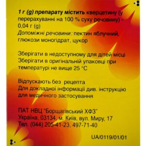 - 1 g of the drug contains quercetin (calculated on 100% dry matter) – 0.04 g;