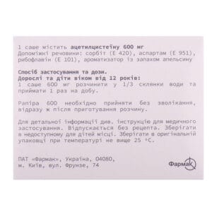 The active substance is acetylcysteine (one sachet contains 600 mg of acetylcysteine).