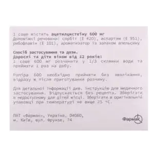 The active substance is acetylcysteine (one sachet contains 600 mg of acetylcysteine).