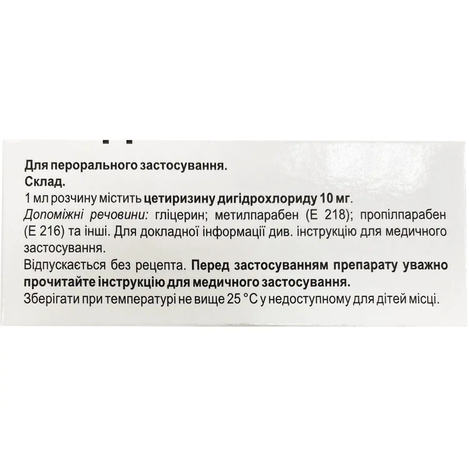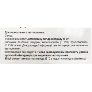 - 1 ml of solution contains cetirizine dihydrochloride 10 mg;