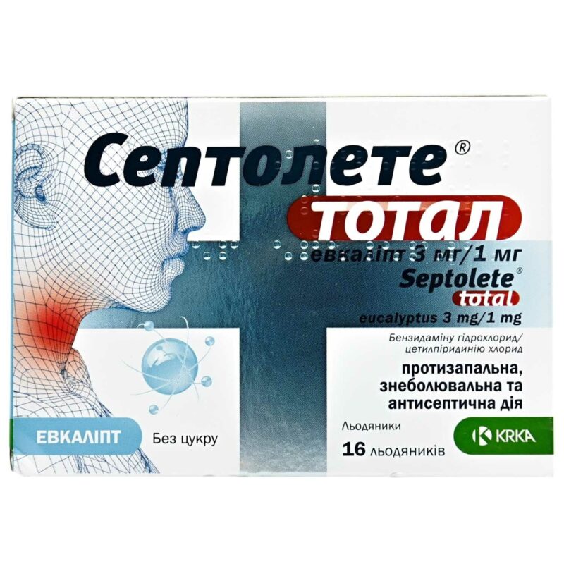 Septolete Total lollipops are indicated for the symptomatic treatment of throat and oral cavity infections (pharyngitis, laryngitis, gingivitis, conditions before and after tooth extraction, etc.).