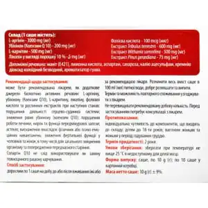 It may be recommended by a doctor as an additional source of biologically active substances: L-arginine, ubiquinone (Coenzyme Q10), L-carnitine, lycopene, folic acid and plant extracts for the following conditions: impaired cardiovascular system activity; decreased ubiquinone (Coenzyme Q10) levels due to taking statins; impaired liver, kidney and prostate function; asthenia; exhaustion due to physical or psycho-emotional stress; decreased fertility in men and women; including for general strengthening of the body and prevention of premature aging.