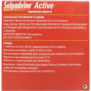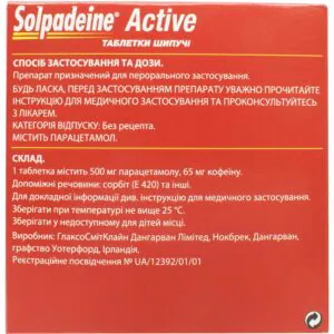 Solpadein Active effervescent tablets are used for the following indications: pain of medium and severe intensity (headache, migraine, musculoskeletal pain, muscle pain, toothache, pain after tooth extraction and dental procedures, sore throat , periodic pain during menstruation), fever and pain after vaccination, elevated body temperature.
