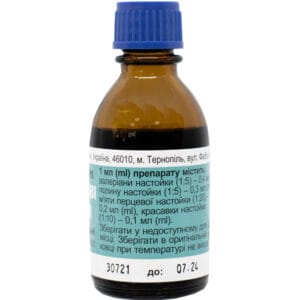 Stomach drops is combined drug of plant origin. has antispasmodic and analgesic properties. has a complex effect: central – sedative, due to the predominant suppression of ascending activating effects on the reticular formation of the brain, and peripheral – antispasmodic, which is due to the suppression of the conduction of spasmogenic impulses to smooth muscle cells, located mainly in the abdominal organs. The mechanism of the analgesic effect of the drug is due to the prevention and elimination of smooth muscle spasms and thereby reducing the excitation of nociceptive receptors located in them.