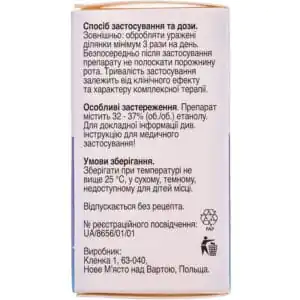The drug has an astringent, softening, anti-inflammatory effect on the mucous membrane of the oral cavity due to extracts of oak bark, chamomile flowers and sage leaves. In addition, tannins and essential oils contained in the drug have an antiseptic, antibacterial and antifungal effect on the mucous membrane of the oral cavity and gums. In vitro tests have shown that essential oils of sage and chamomile have a bactericidal effect on gram-positive and gram-negative bacteria, as well as a fungicidal effect on candida albicans.