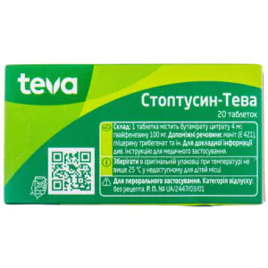 Stoptussin syrup: intended for use in children from 6 months of age and adults. The dosage should be selected depending on the patient’s body weight: up to 12 kg – 1.25 ml 3-4 times a day; 12-20 kg – 2.5 ml 3 times a day; 20-40 kg – 2.5 ml 3-4 times a day; 40-70 kg – 5 ml 3 times a day; 70-90 kg – 5 ml 4 times a day; 90 kg – 7.5 ml 3-4 times a day.