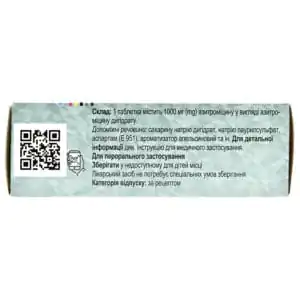 1 tablet contains 1000 mg of azithromycin (active ingredient) in the form of azithromycin dihydrate.