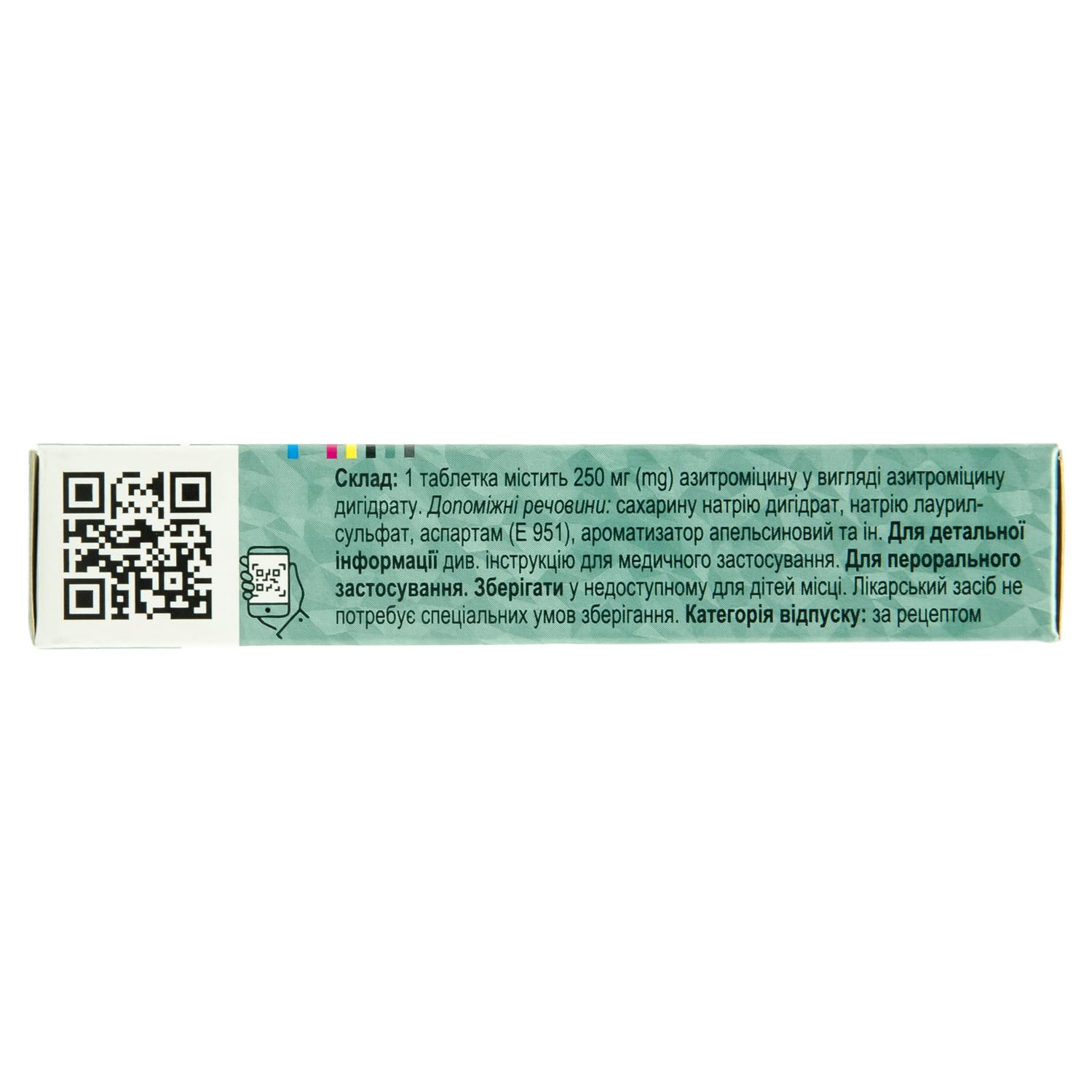 1 tablet contains 250 mg of azithromycin (active ingredient) in the form of azithromycin dihydrate.
