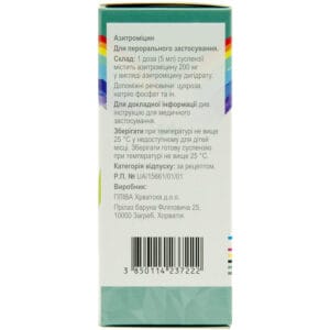 1 dose (5 ml) of suspension contains 200 mg of azithromycin as azithromycin dihydrate;