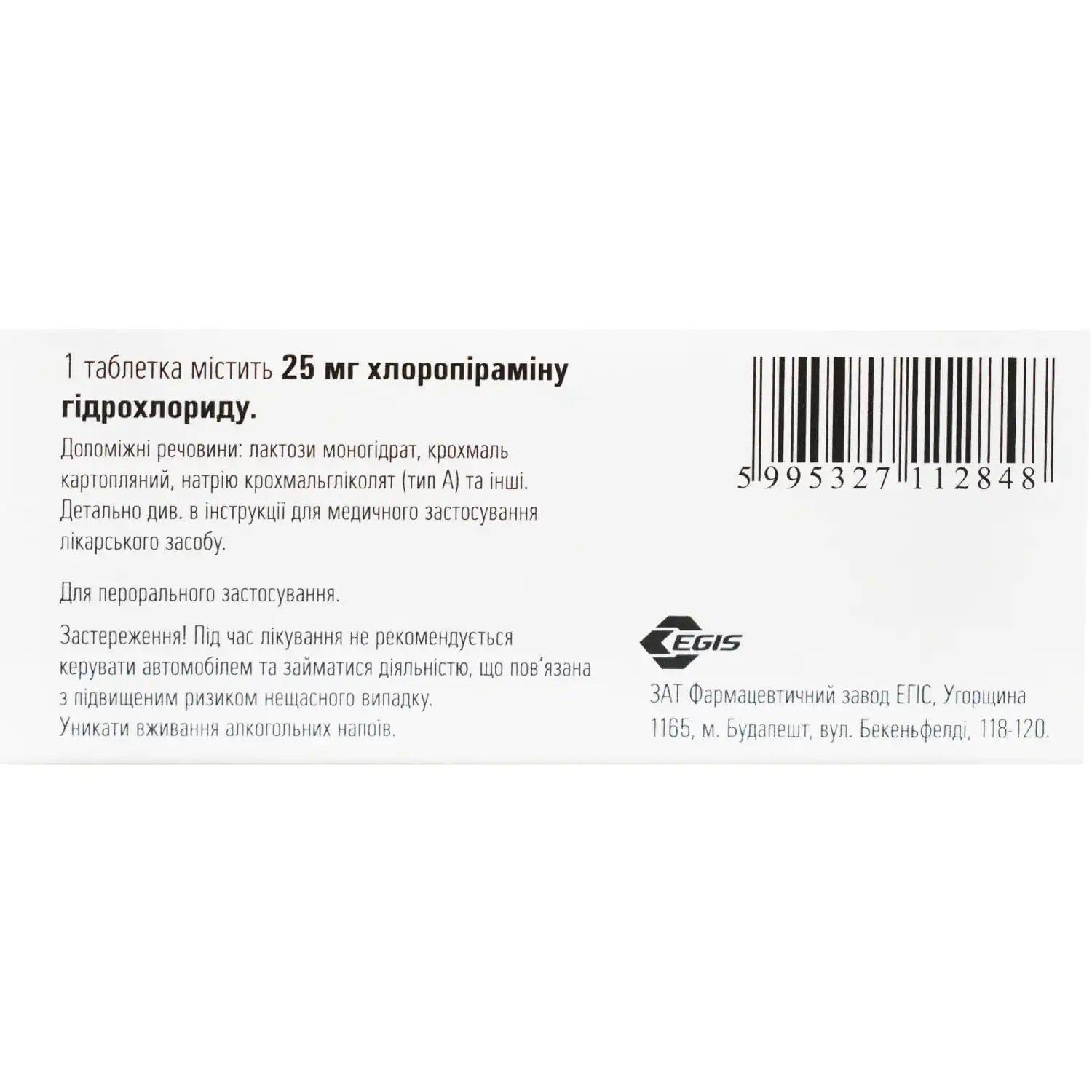 - 1 tablet contains 25 mg of chloropyramine hydrochloride;