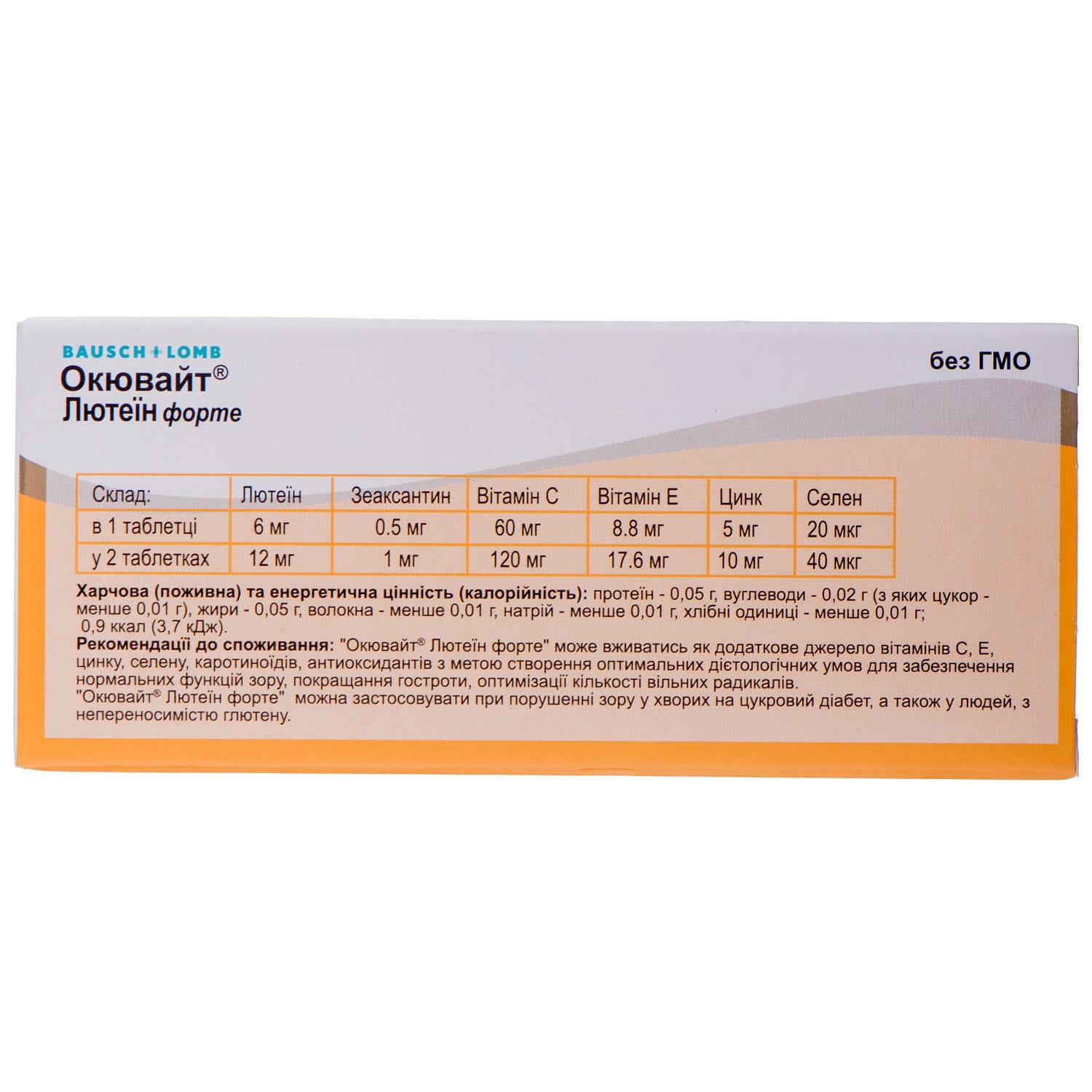 “Okuvite Lutein Forte” can be used for vision impairment in patients with diabetes, as well as in people with gluten intolerance and celiac disease. It does not contain lactose, peanut butter, and GMOs.