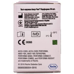 Test strips for the Accu-Chek Performa blood glucose meter (50 pcs. per package) are used as an indicator for quantitative determination of glucose levels in fresh venous, arterial and capillary blood taken from a finger.