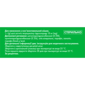- 1 g of ointment contains tetracycline hydrochloride 10 mg;