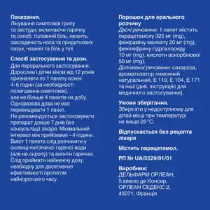 Adults and children over 12 years of age are prescribed 1 packet every 4-6 hours (as needed to relieve symptoms), but not more than 3 packets per day. A single dose should not exceed 1 packet. It is not recommended to use the drug for more than 7 days. Before use, the contents of 1 packet must be dissolved in a glass of boiled hot water. Take hot.