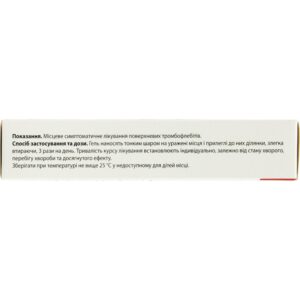Local symptomatic treatment of superficial phlebitis, thrombophlebitis, varicose veins, which are manifested by edema, pain, a feeling of heaviness in the legs, cramps, trophic ulcers of the lower leg. Sports and household injuries (dislocations, bruises, sprains, hematomas). Tendovaginitis.