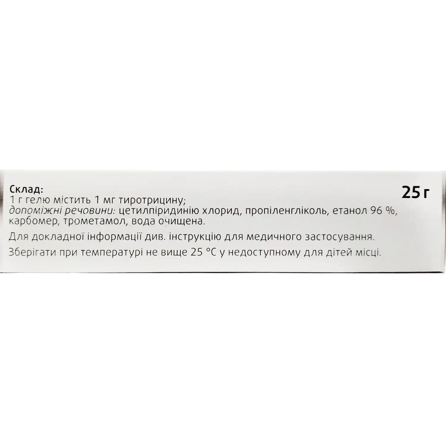 1 g of gel contains 1 mg of tyrothricin;