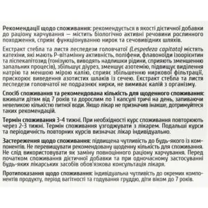 Recommended as a dietary supplement – contains biologically active substances of plant origin, promotes the functioning of the kidneys and urinary tract.