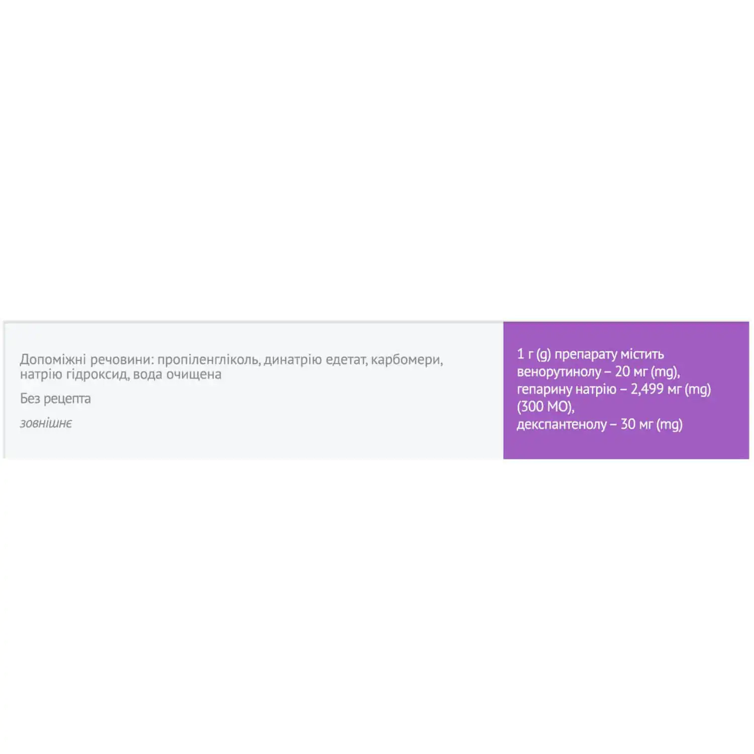 Venohepanol is an antithrombotic, anti-edematous agent with anti-inflammatory effect for external use. Heparin, which is part of the drug, has a local antithrombotic, anti-edematous and anti-inflammatory effect. Venorutinol has a venotonic and angioprotective effect, normalizes the permeability of the capillary walls, increases their tone due to p-vitamin activity and improves microcirculation and tissue trophism. Dexpanthenol stimulates granulation and epithelialization of tissues, forming an active metabolite – pantothenic acid, which participates in the synthesis of coenzyme A.