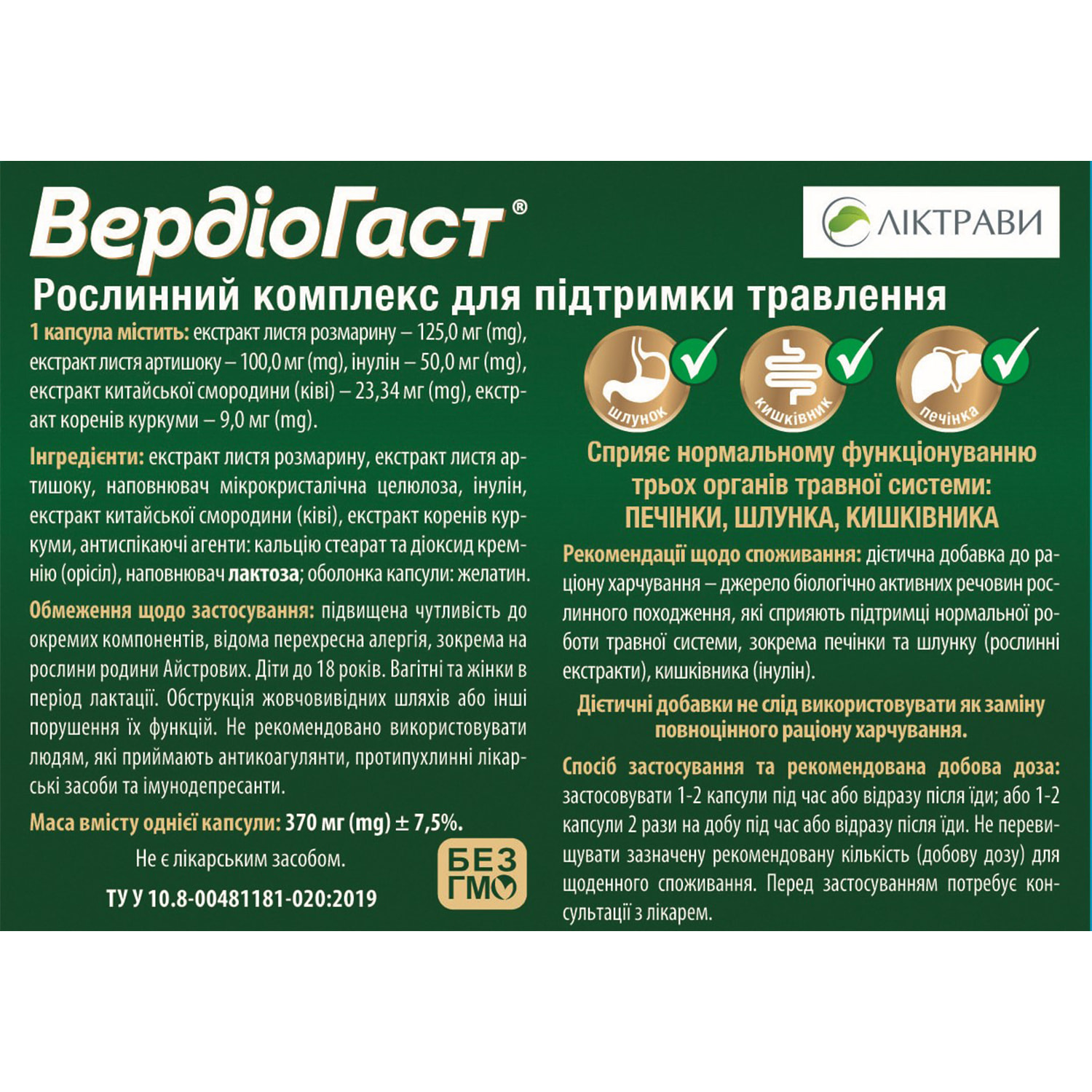 Verdiogast dietary supplement herbal care for your digestion 20 capsules.