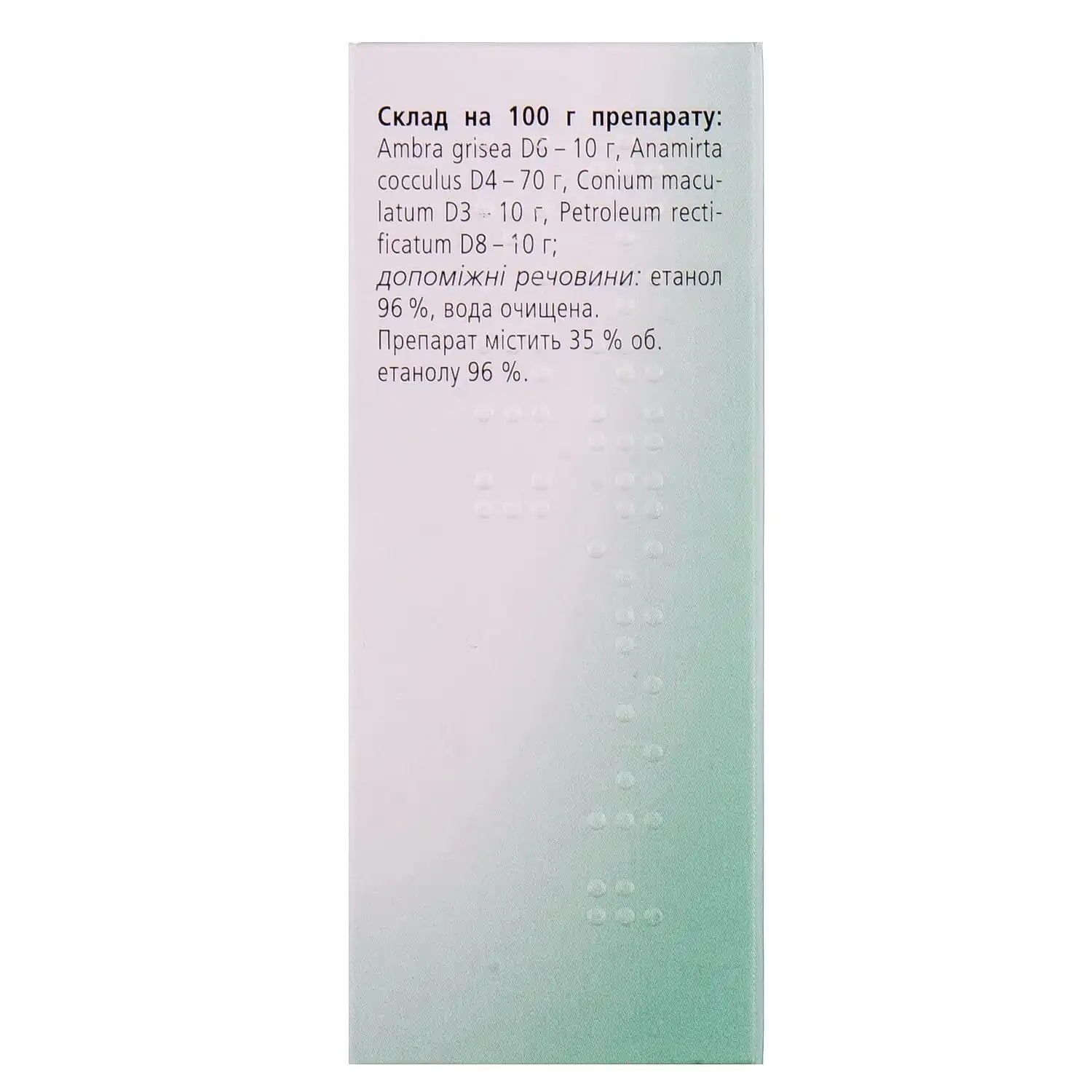 Excipients: ethanol 96%, purified water.