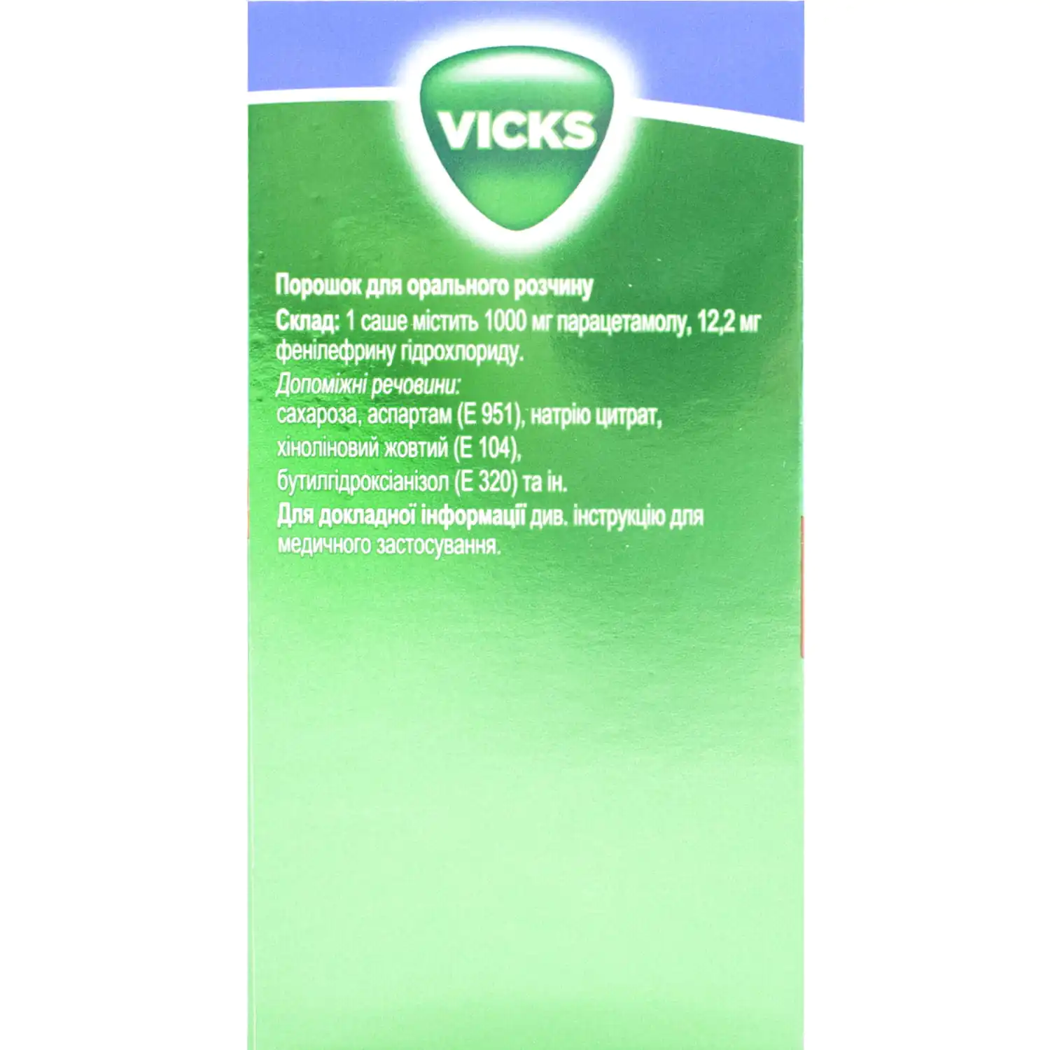 Excipients: Ascorbic acid. One sachet of the drug contains 100 mg of ascorbic acid.
