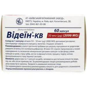 Videin-KV (Dietary supplement) – as an additional source of vitamin D3 (cholecalciferol).